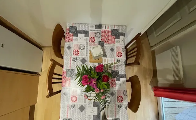 2 chambres (1 lit 2 places 140x190 + 2 lits 1 place 80x190), 1 coin cuisine-séjour équipé, 1 sanitaire (WC + douche), 1 place de stationnement
