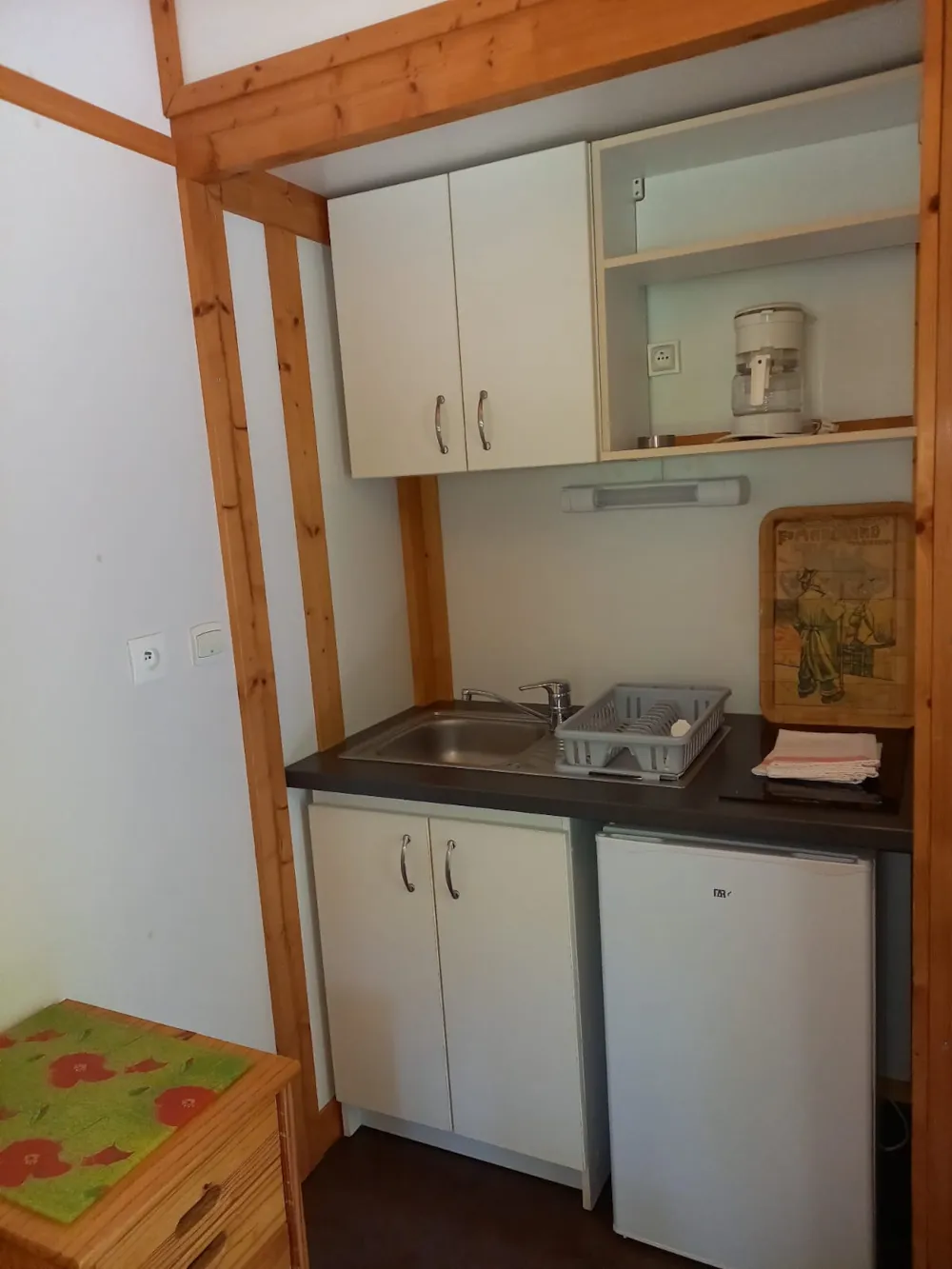 1 chambre (1 lit 2 places 140x190), 1 coin cuisine-séjour équipé, 1 sanitaire (WC + douche), 1 place de stationnement