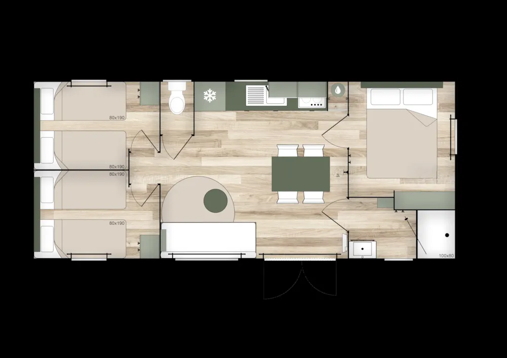Le mobil home PREMIUM PLUS avec Clim 3 chambres allie confort et espace.