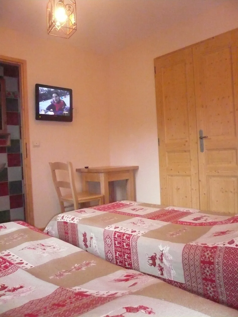 Elle se compose de 2 lits de une place (possibilité de les rapprocher pour un couple), TV et salle de bain (douche, lavabo et WC). un placard à skis au rez de chaussée