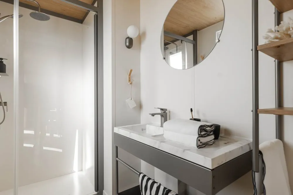 Avec une terrasse, ce mobilhome est équipé d'une chambre avec 1 lit double 160 X 200 et d'une chambre avec 2 lits jumeaux, d'une pièce de vie avec table et banquette, salon tv, d'une salle de bains douche lavabo et d'un wc séparé. Les lits sont prêts pour votre arrivée, et une connexion wifi est disponible du mobilhome. Ce mobilhome est climatisé.
